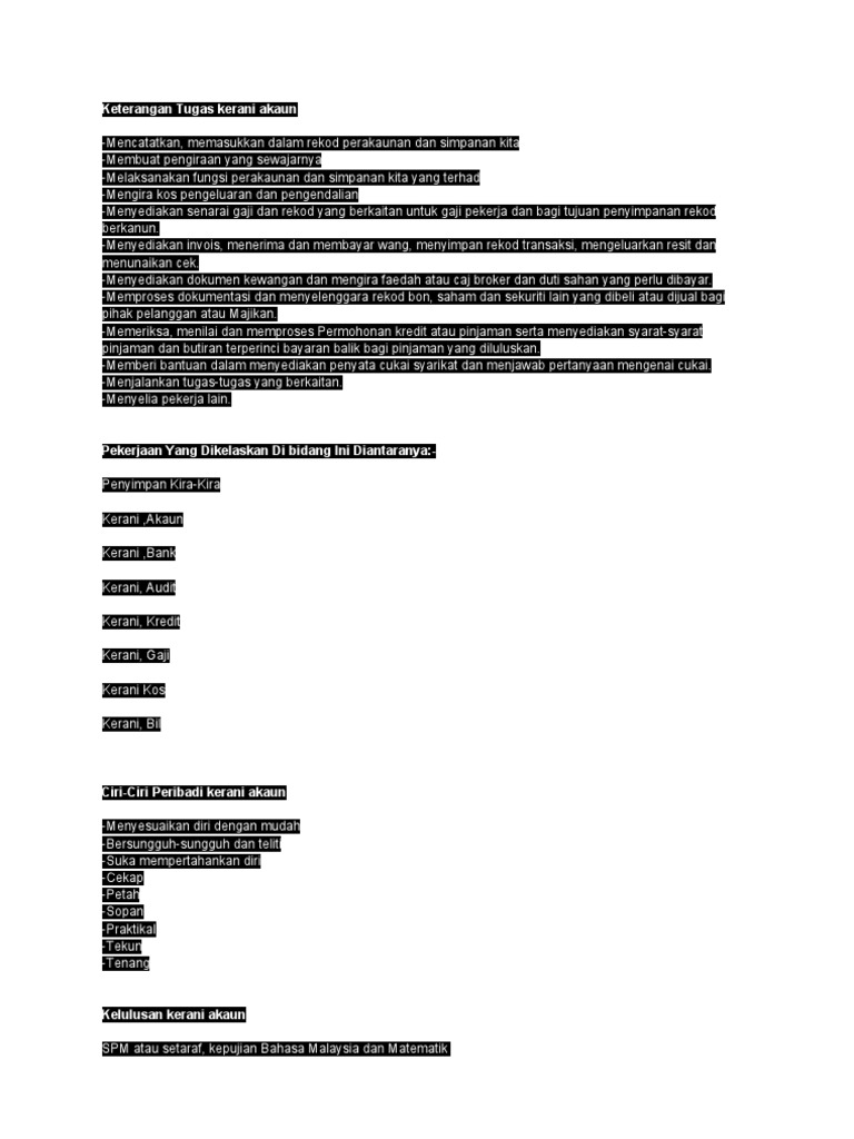 Tugas Akauntan Kerjaya Kerani Akaun