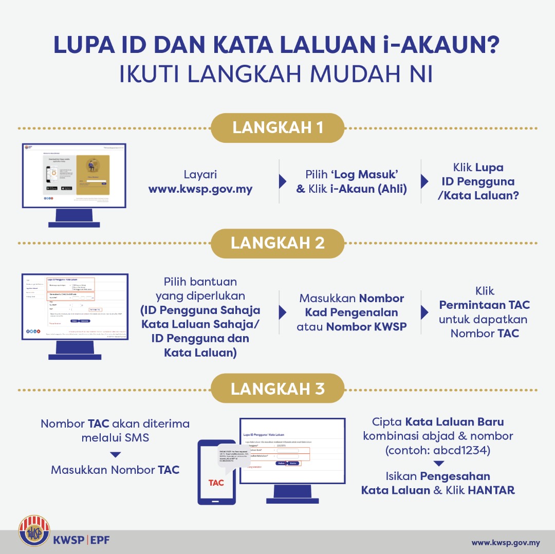 12132020 Pilih Log Masuk ke i-Akaun Ahli Klik Lupa ID Pengguna Kata Laluan. Welcome to i-Akaun Employer i-Akaun Employer USER ID. Sekiranya terlupa kata laluan i-akaun KWSP boleh ikuti panduan yang disediakan berikut.